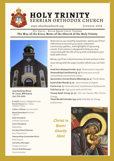 This page contains a schedule of church services and other ongoing events in our parish. Although the Serbian Orthodox Church bases its liturgical calendar on the Julian calendar, for simplicity reasons, all dates shown below are in the Gregorian calendar.